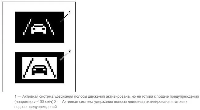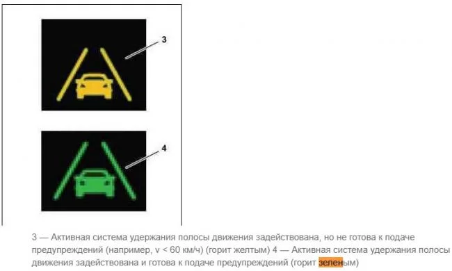 Предполагаю включена система контроля полос , а зелёный цвет активация системы торможения.