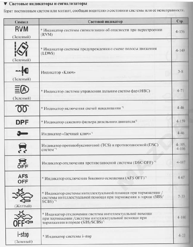 Значки щитка приборов именно третьего поколения указаны ниже.