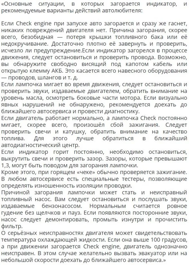 Если чек горит при работающем двигателе, то значит есть неисправность, точную причину можно определить при диагностике сканером и проведении ряда проверок по ошибкам, которые есть в памяти ЭБУ. Частые причины описаны тут.