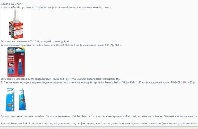 Можно ли использовать герметик Рейнзосил место рекомендованного AFD2018 для крышки клапанов?