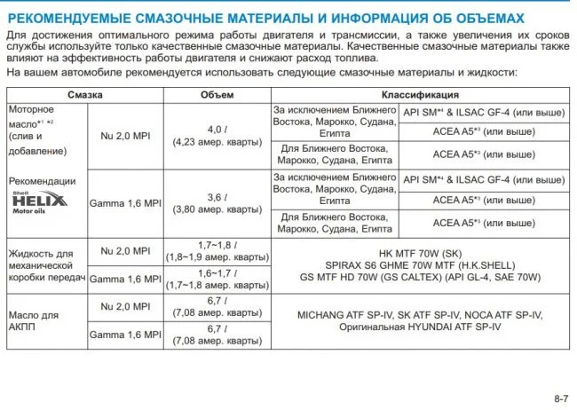 Масло можно заливать любого производителя, главное, что бы оно соответствовало классификации рекомендованной производителем, указана ниже в выдержке из руководства. Вязкость лучше выбрать 5W-40, есть мнение, что для двигателей киа/хендай эта вязкость лучше.