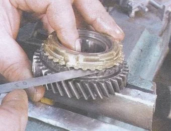 Измерьте зазор между кольцом синхронизатора и боковой поверхностью шестерни.
