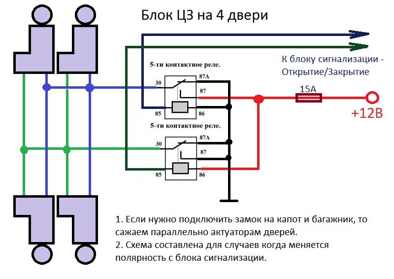 С блока центрального замка на сигналку выходят два провода, на которых постоянно присутствует +12 вольт. При подключении к входу сигналки происходит конфликт. Как я понимаю это с блока сигнализации должен подаваться короткий импульс 12 вольт?