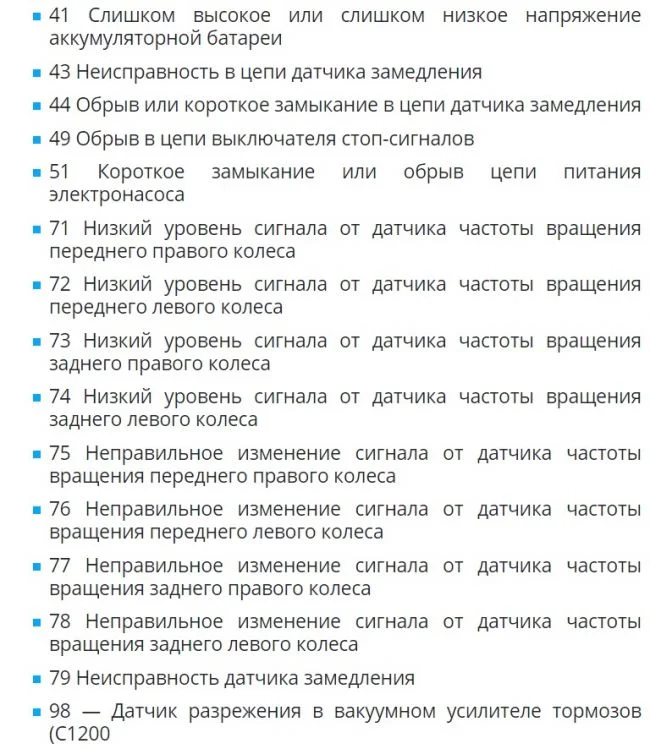 А вот АБС наверняка не срабатывает. Потому что нет контакта с датчиками АБС (два или более). Об этом говорит индикатор АБС и на пару с ним индикатор «ручника». «Проверь тормоз» — это попутная надпись.