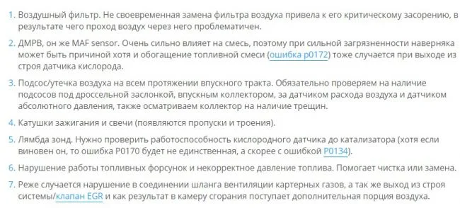P0170 — Нарушение соотношения смеси, причины тут.