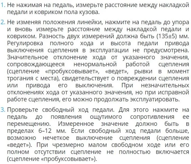 «Ход педали сцепления проверяют для оценки его технического состояния и при выяснении причин ненормальной работы (сцепление «ведет», «пробуксовывает» и пр.).Вам потребуются: ключи «на 9», «на 12», «на 13», линейка.