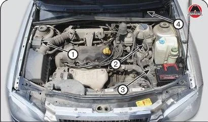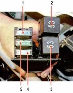 Вот где цифра 4 указывает, там блок ЭБУ двигателя и блок предохранителей маленький есть, еще пару реле. Вот эти предохранители проверьте их там немного.