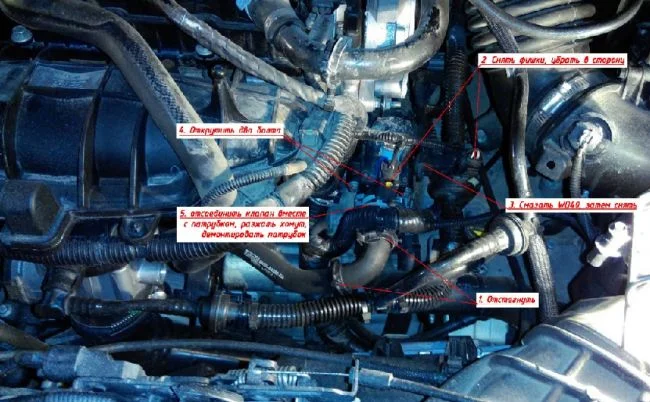 Клапан управления геометрией турбины располагается между АКБ и ГБЦ, поэтому доступ к нему неограничен ничем и выполнить обслуживание ... Замена на Форд Куга выполняется довольно просто достаточно открутить две гайки ключом на "10". Снять старый и поставить новый.