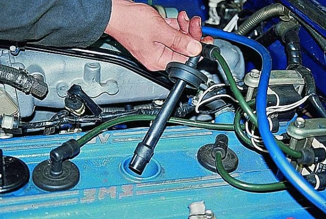к свечам зажигания, которые находятся сверху двигателя в свечных колодцах