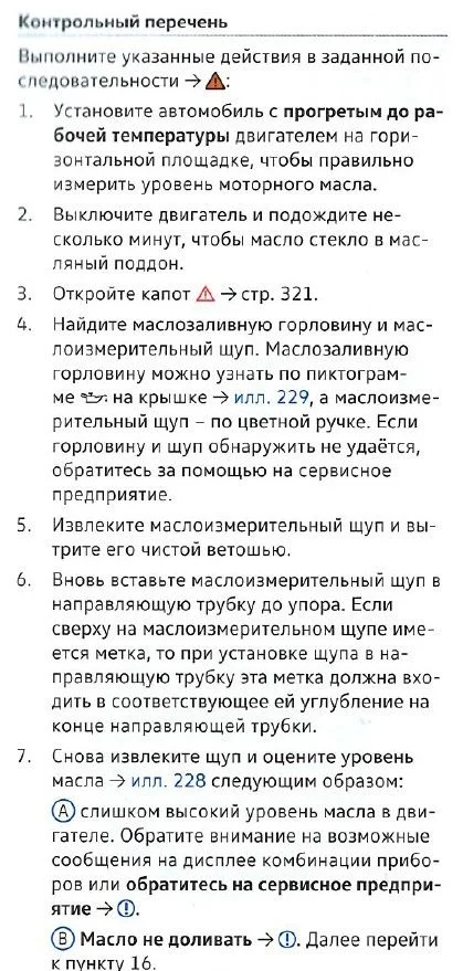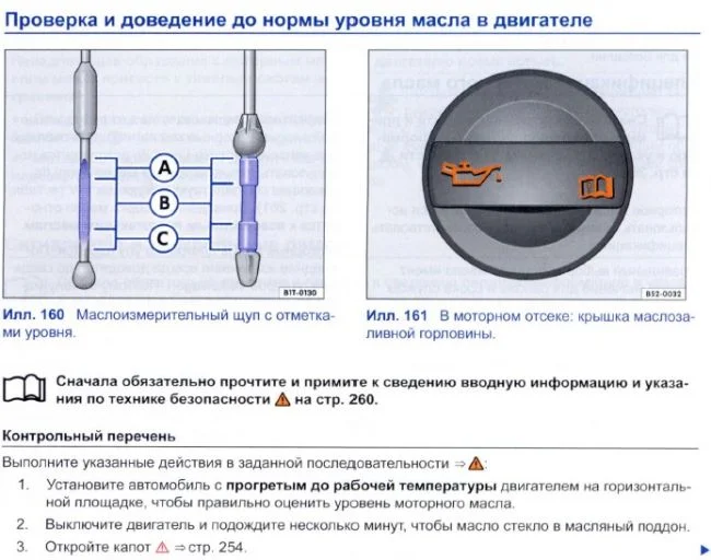 Ниже выдержки из руководства по Тигуан с 2017 года и Джетта 6, по вашему авто книжку не нашел, но не суть. В них указано, что проверяется на горячую и это логично, при работе двигателя масло частично остается на стенках и фактический уровень будет меньше, чем на холодную.