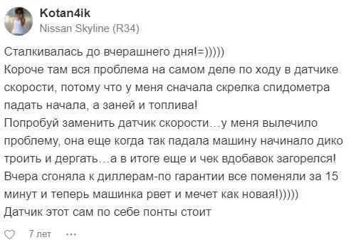 Ещё одна причина есть — слабое касание резистора датчика токосъёмником, это на тот случай если замена датчика скорости не поможет. Датчики насколько помню завязаны на БК.