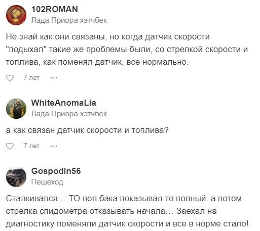 Датчик топлива и датчик скорости могут быть завязаны на щитке приборов.