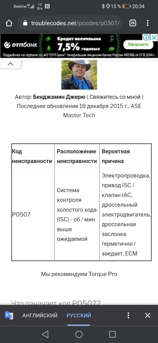 Прыгают обороты на холостых 1000-2000, код ошибки P0507.