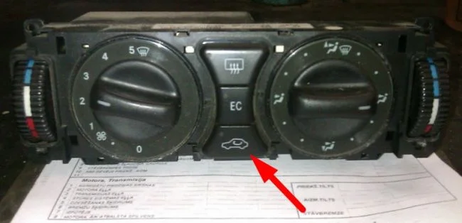 Кнопка включения рециркуляции воздуха (забор воздуха из салона) находится на блоке управления климатом, если рециркуляция включена, то на кнопке будет гореть лампочка. Если вы выключаете рециркуляцию, а стекла все равно потеют, то нужно проверить саму заслонку рециркуляции (ее пружинку, она могла слететь) и ее вакуумный привод (часто у него рвется мембрана), возможно рециркуляция не включилась из за их неисправности. Как поменять привод заслонки описано тут, так же пригодится информация указанная тут.