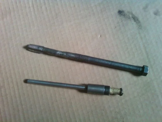 Съёмник — метчик. Диаметр подберёте по валу. Шаг не важен. Длину — по необходимости.