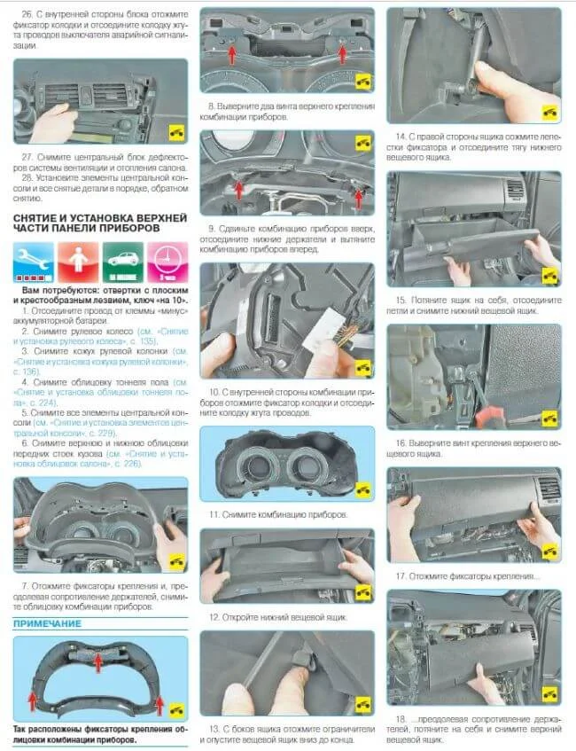 Как снять торпедо вашего автомобиля показано на видео, так же приложил подробную выдержку из руководства