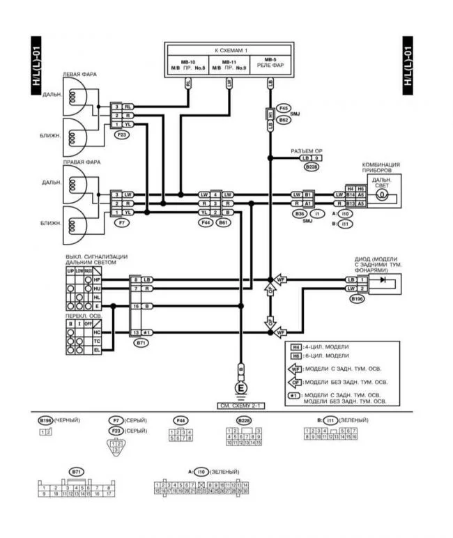 Нужна распиновка контактов передней фары Субару Легаси 4