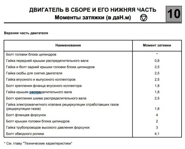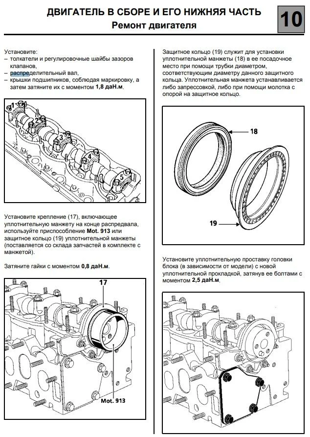 Какие моменты затяжки распредвала Рено Мастер 2?