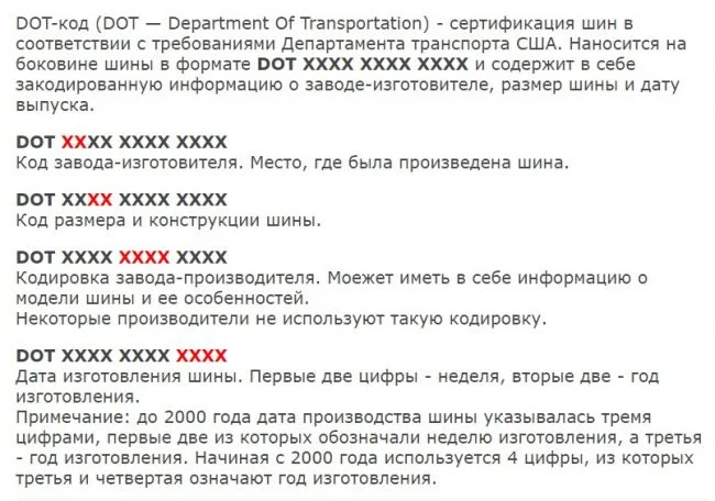 Как расшифровать dot шин?