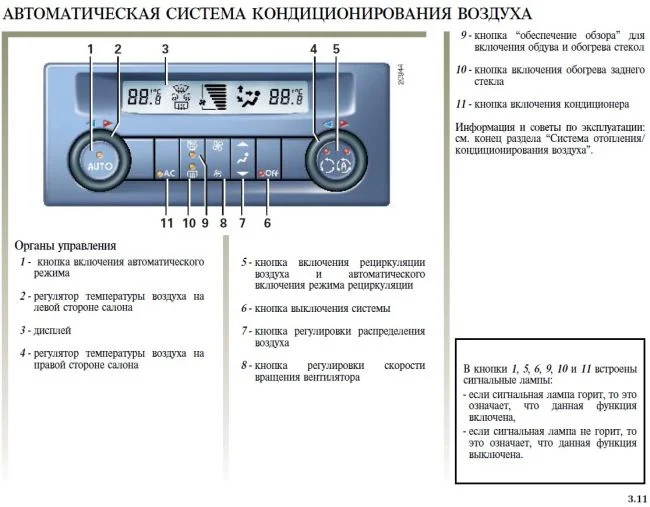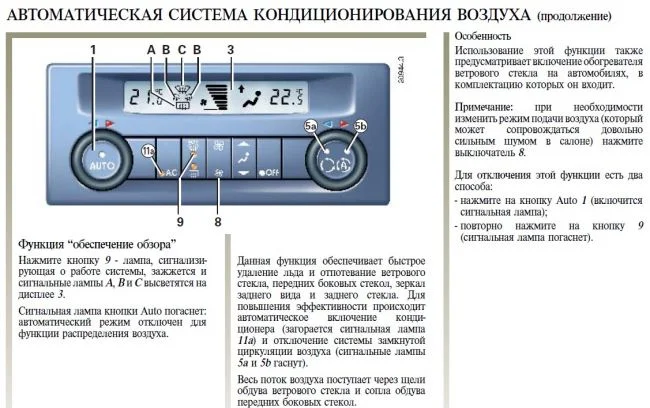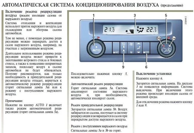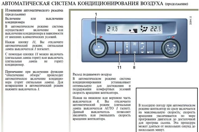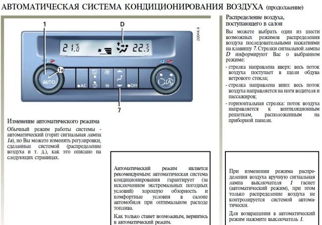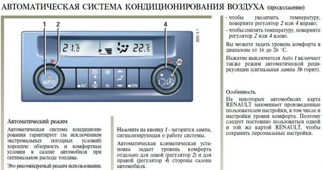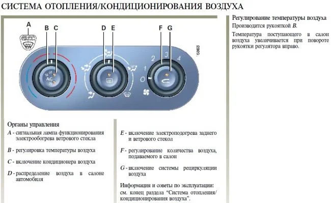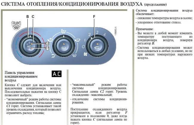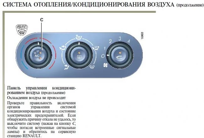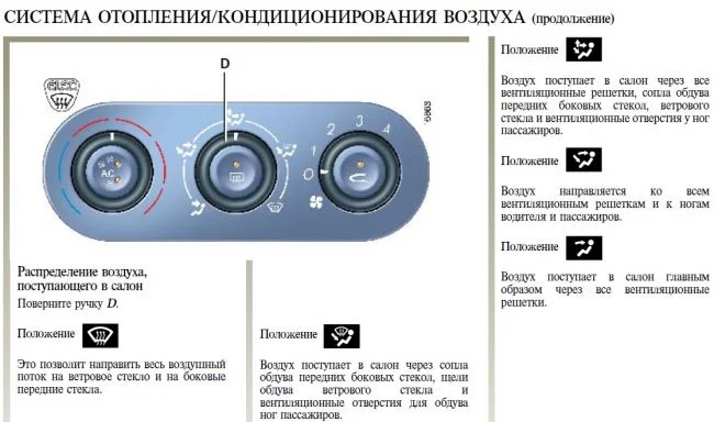 Нужна расшифровка значков на панели кондиционера Рено Лагуна 2