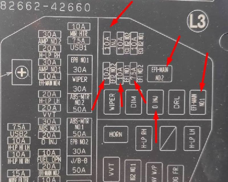 Rav 4, 5 поколения, гибрид, 2.5 литра, если можно дополнительно, какой предохранитель за что отвечает?