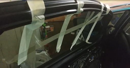 После откручивания болтов поднимите стекло руками вверх и зафиксируйте малярным скотчем.