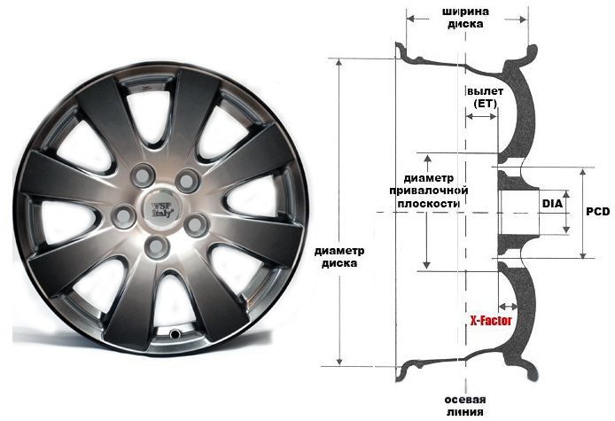- Цифра 20 обозначает диаметр посадки колесного изделия. Этот показатель соответствует посадки автомобильной шины.