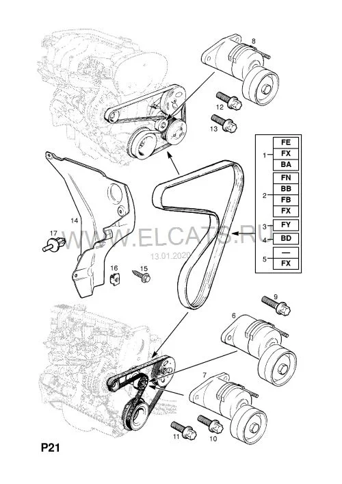 Замена ремня и натяжного ролика вспомагательных агрегатов Opel Vectra B