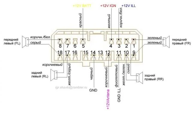 А при включении зажигания, от замка ещё приходит напряжение. На схеме +12v IGN — это от замка зажигания (питание для работы магнитолы, при её включении).