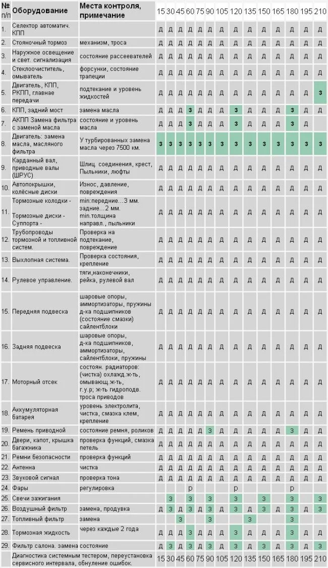 Вы знаете что такое система ASSYST PLUS. Вот гугл вам в помощь. Если вы ТО делаете не по ASSYST PLUS тупо расчитываете по пробегу А/М то тут ни чего сложного нет. Можно стандартной схемой воспользоваться. Обозначение: д — диагностика, з — замена, р — регулировка.