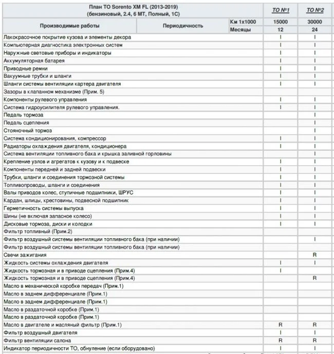 Какие регламентные работы при пробеге 30 тыс. км в Киа Соренто 3?