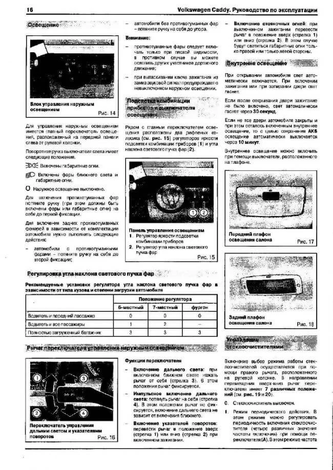 Вот как написано про регулировку фар в руководстве по эксплуатации «Volkswagen Caddy»