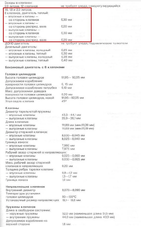 Зазор клапанов указан ниже.