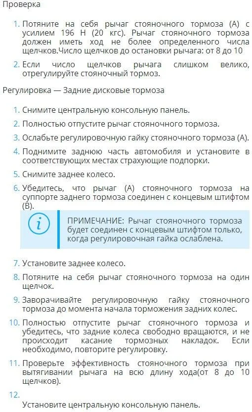 Проверка и регулировка стояночного тормоза