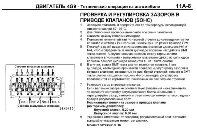 Порядок регулировки клапанов, зазоры. ДВС 1.6, 4g92, 1999 г.в.