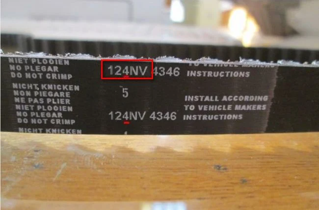 Чтобы определить дату выпуска ремня производства Gates, а также другие параметры, найдите цифры как указано ниже на фото: