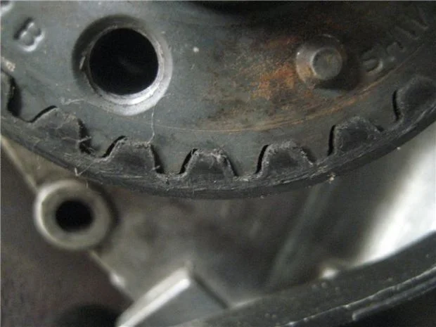 Ну либо перетягивали очень сильно. Либо надо осмотреть шестерни, у всех шестеренок пазы одинаковые, и ремень такой же? Ну вот на фото видите круглые пазы, и прямоугольные. Поняли о чем я?