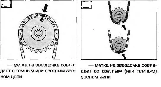 Как правильно выставить метки при замене цепи ГРМ, двигатель А 15? Желательно на фотках