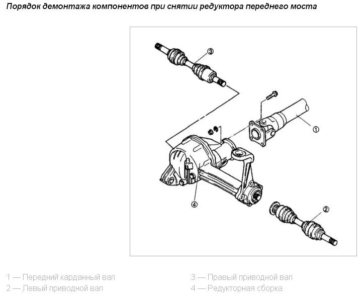 Рекомендую вам скачать руководство по ремонту, там будет детально, пошагово описан весь процесс снятия и разборки всех компонентов моста. Как например вот эти картинки с такой книжки:
