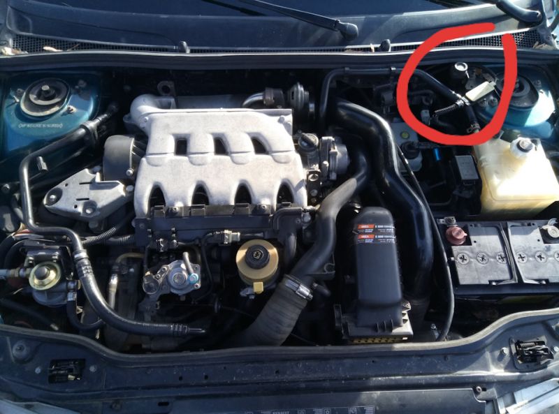 На фото пример нахождения кнопки именно на Лагуне первого поколения, двигатель 2.2. Если кнопки нет, то ее могли срезать, а провода скрутить, так как иногда на хорошей яме мог срабатывать. Если в комплектации нет кнопки, то чаще всего блок SRS не дает двигателю запуститься.