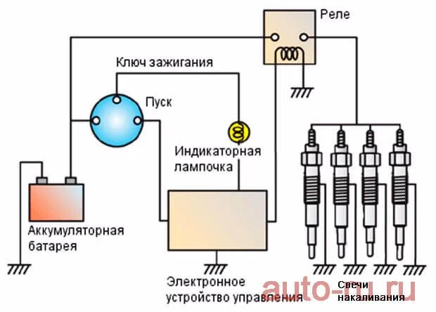 Разогревать воздух внутри камер сгорания нужно лишь для надёжного старта двигателя, поэтому этот процесс контролируется при помощи блока управления свечами накаливания (но есть в схеме и реле)