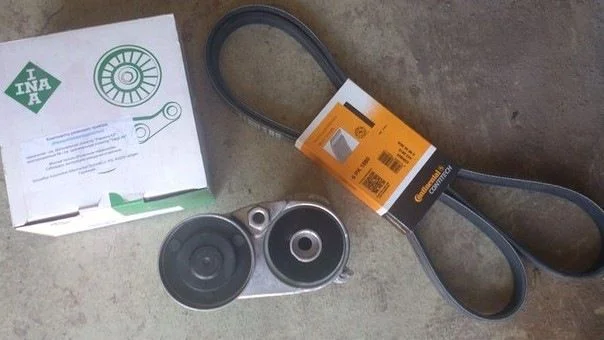 Снять вентилятор охлаждения. Ролик открутить шестигранником на 8. Ну конечно надо сначала его ключом на 17 повернуть, что бы ремень ослаб и застопорить, там есть специальное отверстие, туда вставить болтик на 6 мм. Поставить новый ролик, ремень.