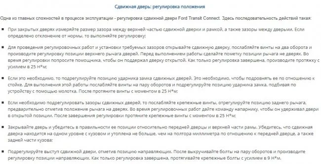 Как отрегулировать сдвижную дверь Форд Транзит Коннект?