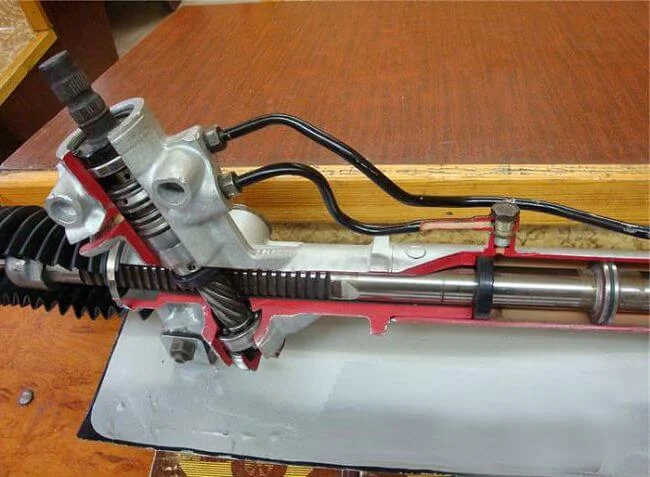 Здесь рулевая рейка с разрезом для расширения кругозора