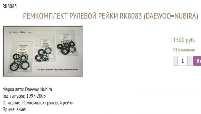 Какие артикулы сальников рулевой рейки Дэу Нубира?