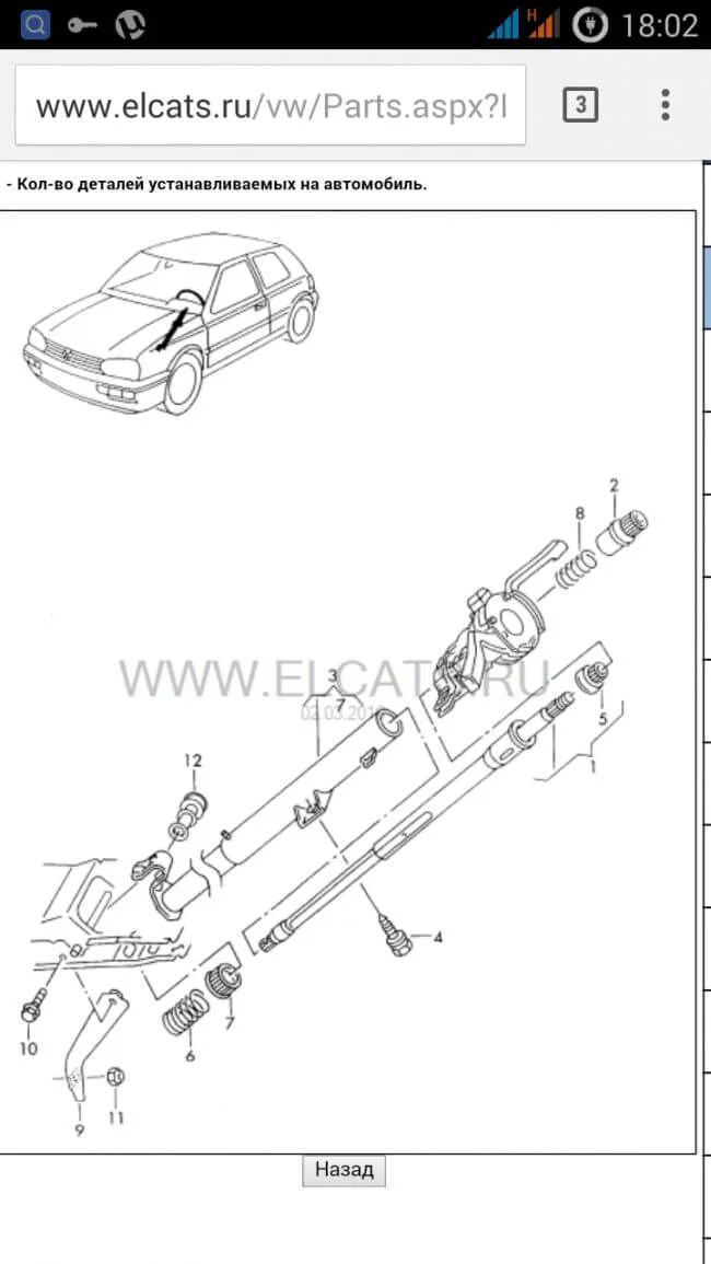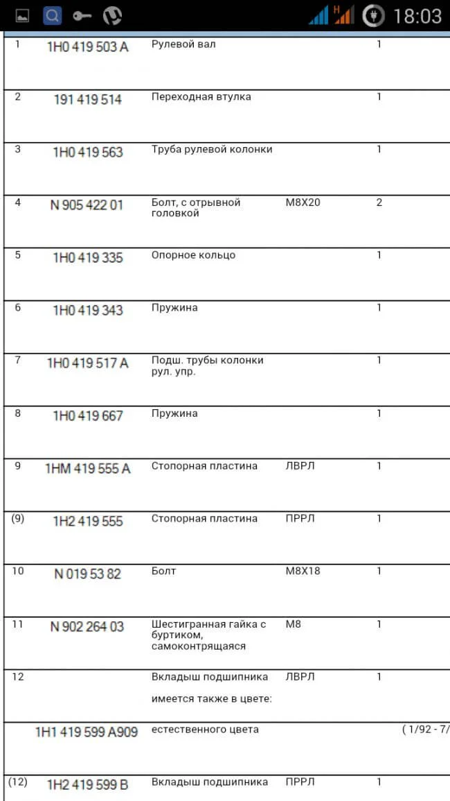 Что входит в состав рулевого вала кроме подшипника на Фольксваген Венто?