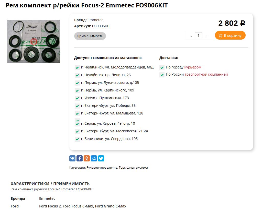 Встречается и ремкомплект Emmetec FO 9006 KIT. Вы если будете в сервисе ремонтировать рейку, то у них обычно есть свои сальники, так же дают гарантию на работы. В аналогах показывает разные сальники, можно ошибиться при выборе.