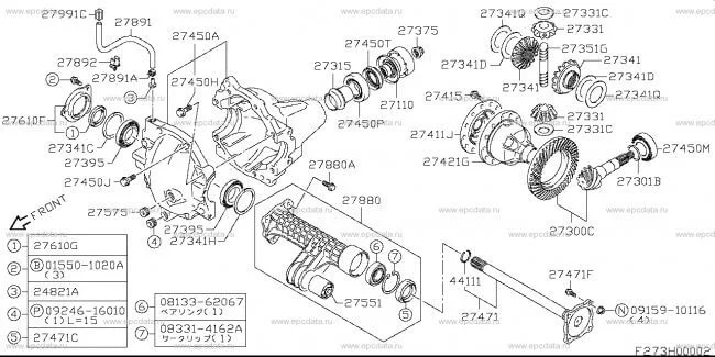 Там действительно идет сальник хвостовика, номер 27450T(oem номер 09283-40027) и сальники на правый(номер на схеме 27610G, oem номер 09283-40029) и левый(27471C, 09283-35052) привода. А раздаточная коробка — это другая, она идет после АКПП, это сам корпус: