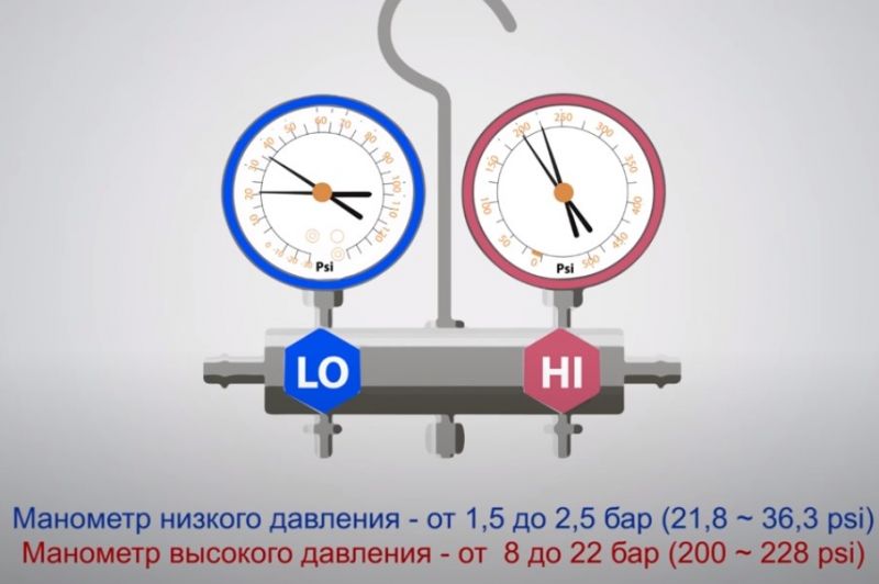 После обслуживания системы кондиционирования результата не достигли. Фреон полностью заменили и масло. Никаких замен и ремонтов деталей ранее не осуществлялось. Холода в салоне не достаточно. Показания манометра низкого давления два бара, а высокого почти 9 бар. Использую автоматическую станцию