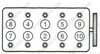 ∙ Отпустить все болты в последовательности обратной, указанной на рисунке.